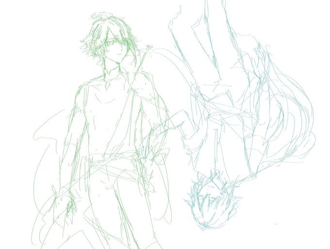 10 26 ふとアランナラ見た時にすっごい既視感覚えたので落書き 既視感の正体(もっふん)と並べると別に似てないかも… 23/05/29 22:10
