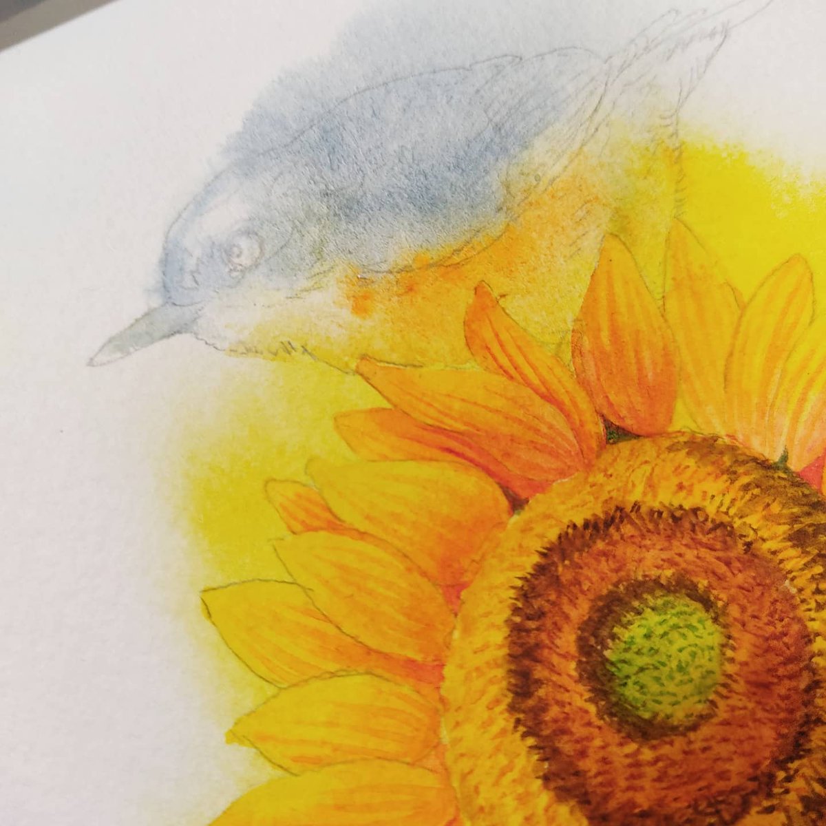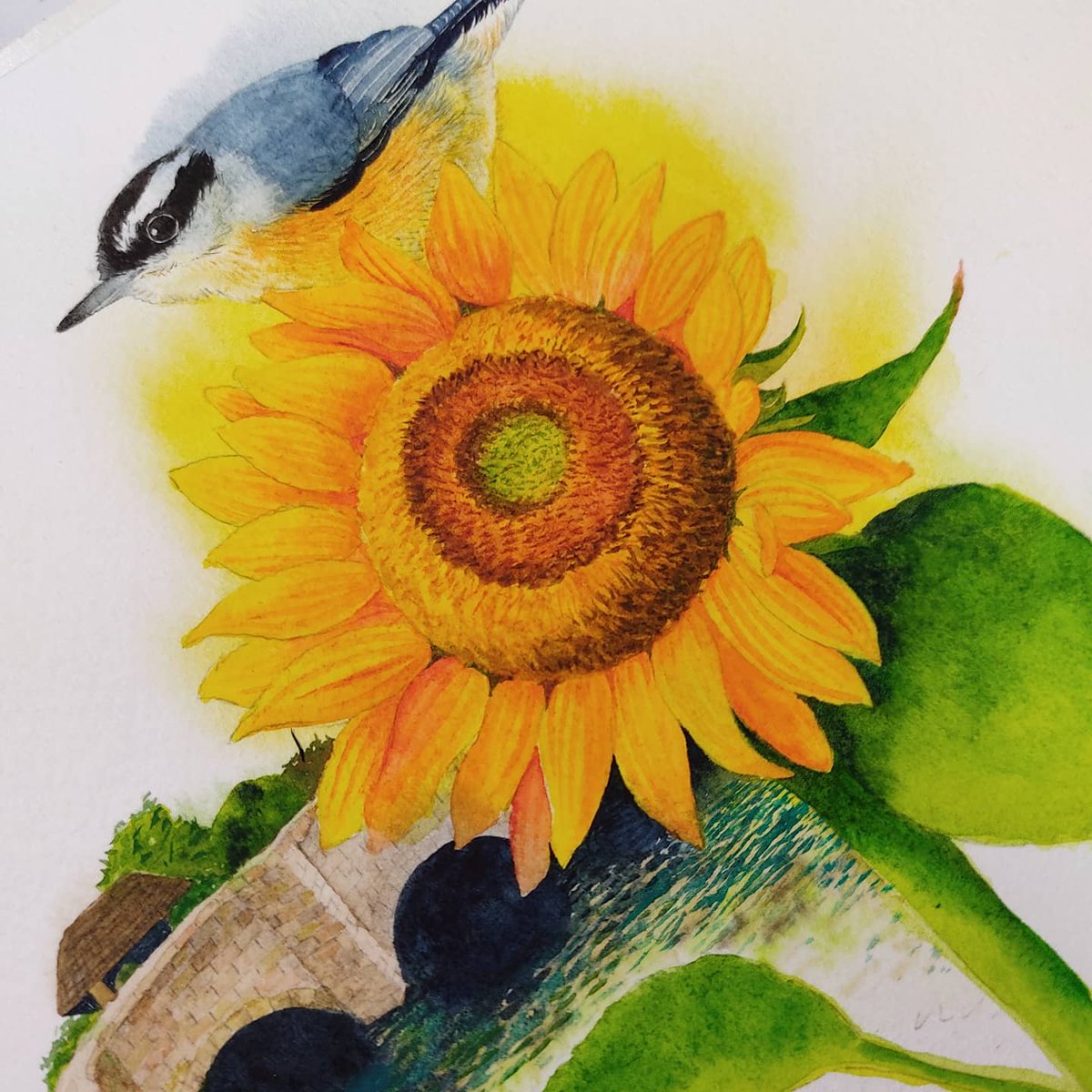 さてさて、大学時代ぶりの一枚絵、 コツコツ塗ってます😆 こんな感じに、描きこんでいます🌿 お家をかくの、楽しいけど細かい〜! レンガ地獄じゃ! しかしまだまだ書き込みは終わらない。 心ゆくまで描くので〜す👍 また、進行あげます✨ 見ていただけたら嬉しいです! #水彩 #ひまわり #小鳥