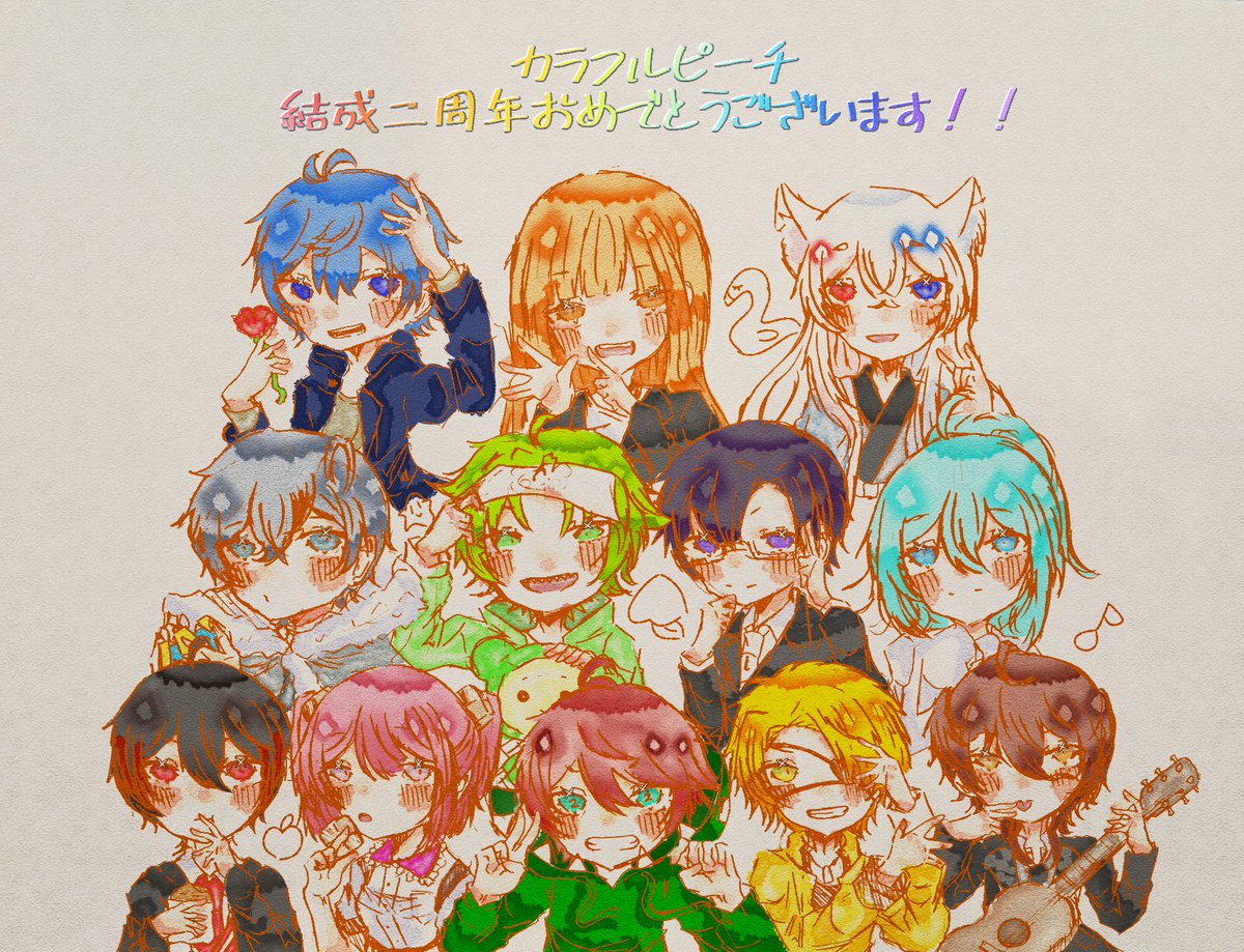 描かずに後悔するより丁寧にすればよかったなって後悔する方を選びました() 気を取り直して二周年おめでとうございます!!!!!ずっと大好きです!! #カラフルピーチ素材 #からぴち2周年 #からぴち