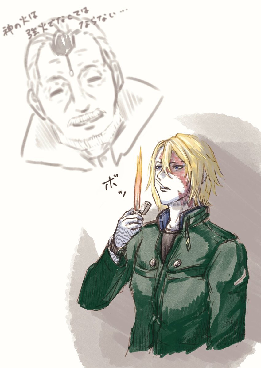 風邪がしんどすぎて逆に寝れなくて、砺波に借りたライターの火が思いの外強かった甲斐ミハイロフを描きました