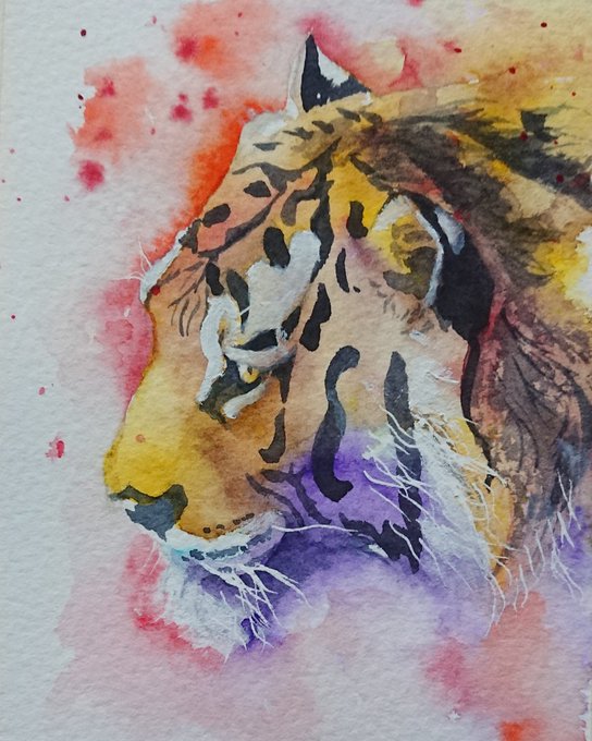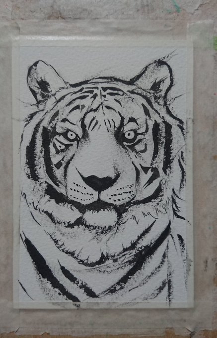 「蹂躙」 今回は被写体をトラにしたので猛々しくだけど血生臭いそういったことをテーマに描きました。 #絵描きさんと繋がたい #絵描きの輪 #絵を描く人々 #トラ #水彩 #美術ネットワークの輪 #芸術の輪