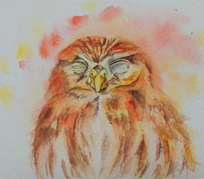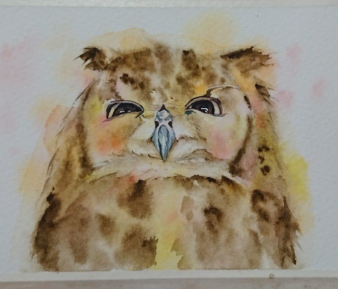 フクロウのこの表情にとても癒されます(*^_^*) #水彩画 #絵描きさんと繋がりたい #絵描きの輪 #絵を描く人々 #美術ネットワークの輪 #芸術の輪 #フクロウ #アナログ絵描きさんと繋がりたい