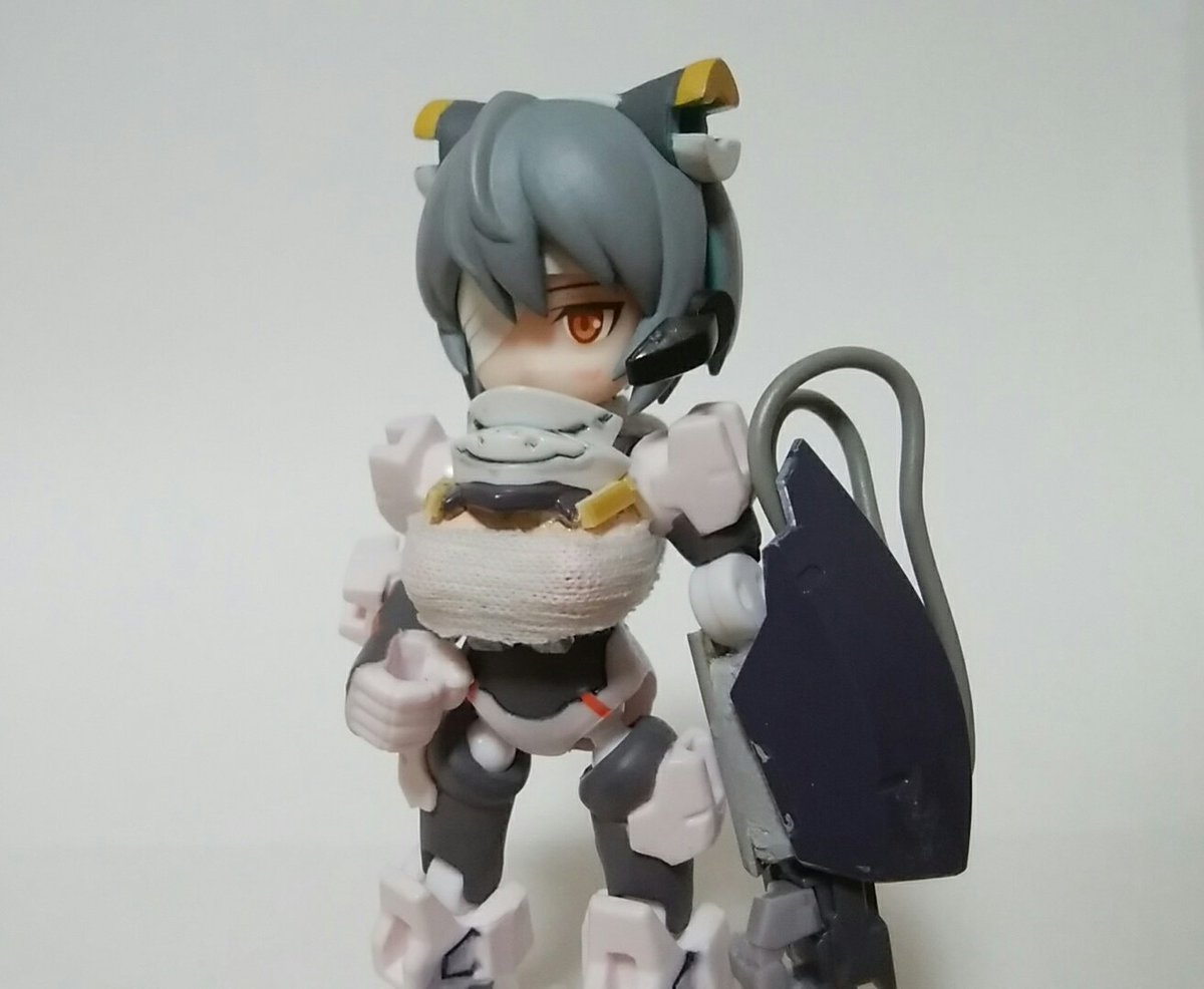 性格とか武装がシルフィーより ミレニアのボディの方が合っている 気がしたのでうちの子大幅リメイク 表情無しの無地顔が余ってたから FAガールのアイデカールを貼り付けた いい顔に仕上がったと思う #デスクトップアーミー