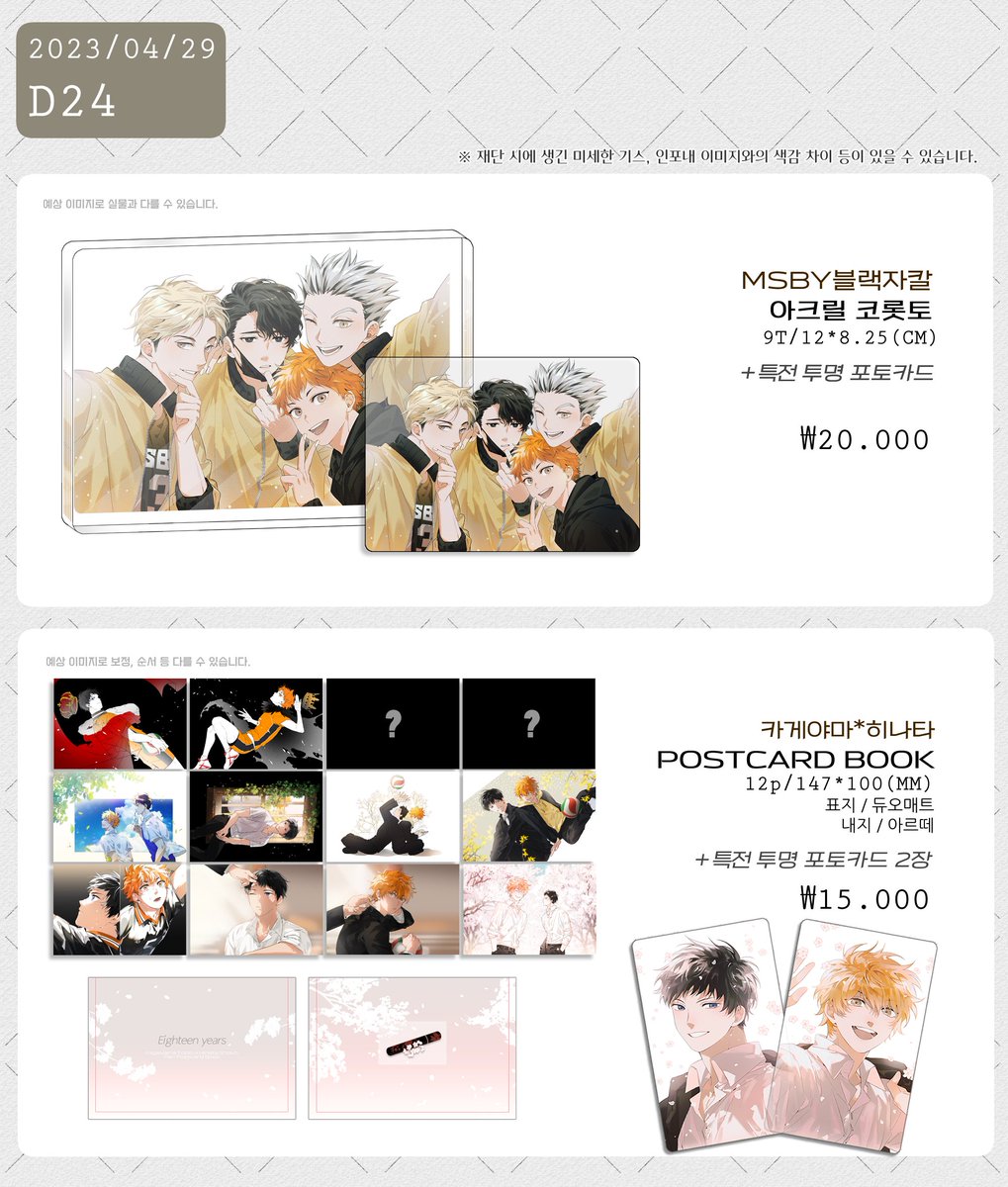4월29일 디페스타 하이큐 현장수령 선입금 페이지입니다~! 블랙자칼 코롯토, 카게야마*히나타 엽서북 가져갑니다>< 🏐 폼 작성 시간 : 4/18(23:00) * 4/19(21:00) 🏐 부스위치 : D24 🏐 질문은 디엠으로 부탁드립니다! witchform.com/deposit_form.p…