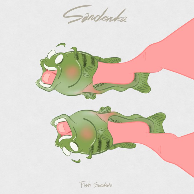 「お魚サンダル」 No.2 魚の口から、、、足の形はエジプト形 #87 #イラスト #イラストレーション #絵 #お絵かき #線画 #オリジナルイラスト #illustration #drawing #art #design #魚サンダル #サンダル #fishsandals #絵柄が好みって人がいればいいなぁ #イラスト好きな人と繋がりたい