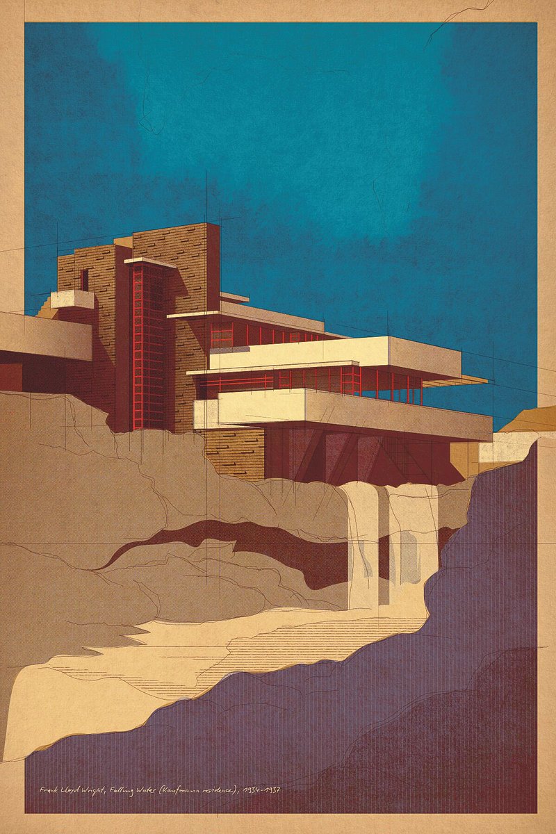 Frank Lloyd Wright, Falling Water (Kaufmann residence), 1934-1937. Limited edition print available at shop.studiosanderpatski.nl #architecture #100x100masterhouses