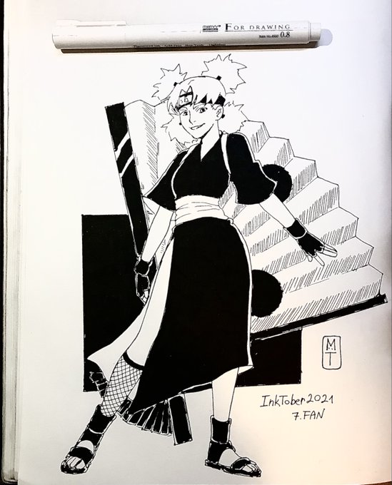 Day 7. Fan #inktober2021 #inktober2021day7 #NARUTO Temari from Naruto with her giantn fan weapon