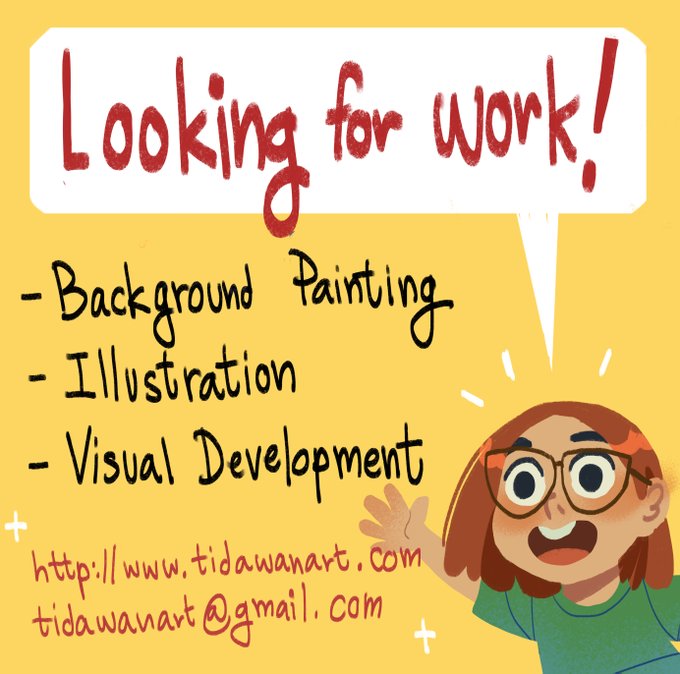 Hi! I'm currently looking for work, preferably remote/freelance atm and will be available for full-time in November. I do background paint, illustration, and concept art You can reach me through my dm or email ⚡️tidawanart@gmail.com ⚡️tidawanart.com