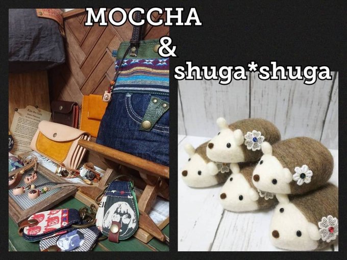 1 1 出店者紹介㉟ MOCCHA & shuga*shuga 普段は個別に活動している2人組です。革小物、デニムリメイク、羊毛フェルトなどテイストの全く違う個性的な作品をお楽しみ下さい #NAGAI森の駅マルシェ #植物園 #ハンドメイド #長居公園 #マルシェ #イベント #デニム #リメイク #羊毛フェルト #あみぐるみ 21/04/19 22:39