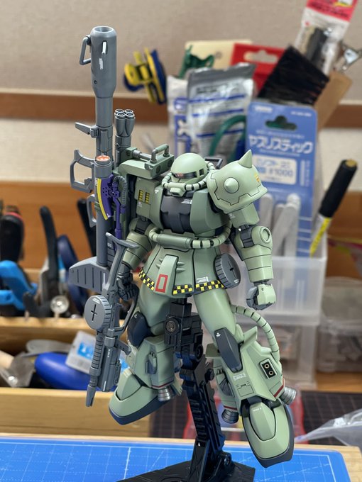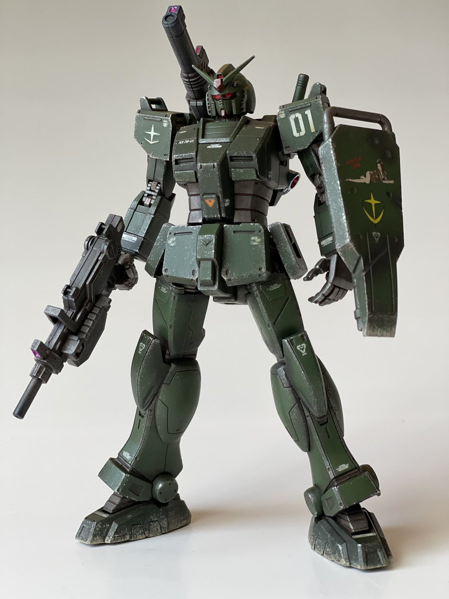 ぷはプラモのプという雑誌の表紙に乗ってたガンダムをリスペクトした作品です。 技術的に本家には遠く及びませんが、ミリタリーカラーにセクシー美女のノーズアートという組み合わせがお気に入りです😆 #ガンプラ #ガンプラの画像貼るとRTされると聞いて #ガンプラ好きと繋がりたい