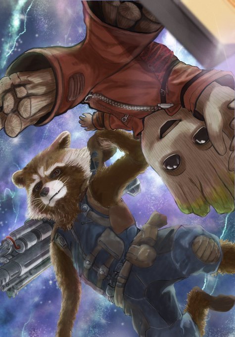ロケット&グルート描きました! #ガーディアンズオブギャラクシー #マーベル #イラスト