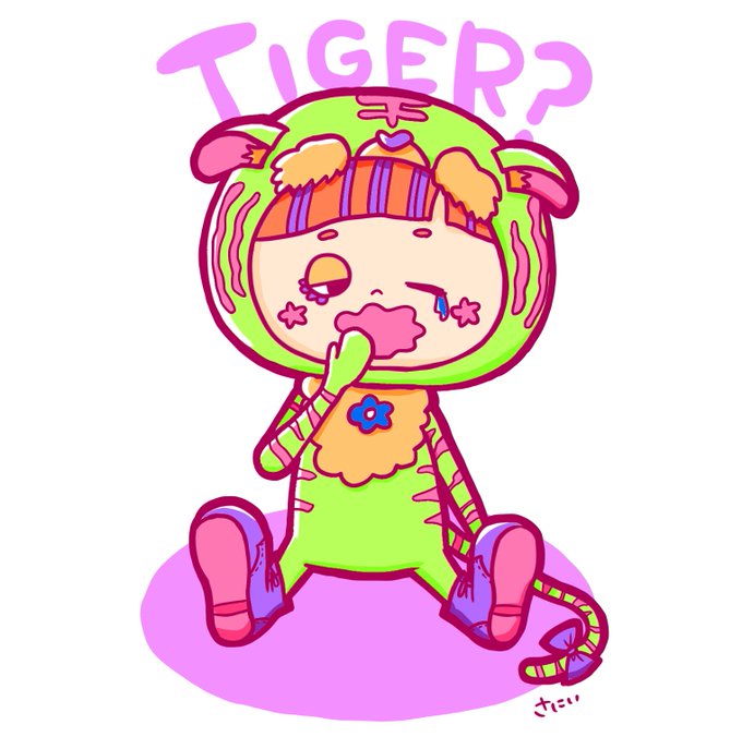 トラの女の子のともだち🐯 ねむいーーーー。 #イラスト好きな人と繋がりたい #イラスト好きさんと繋がりたい #絵描きさんと繫がりたい #illustration #カラフル #あくび #トラ