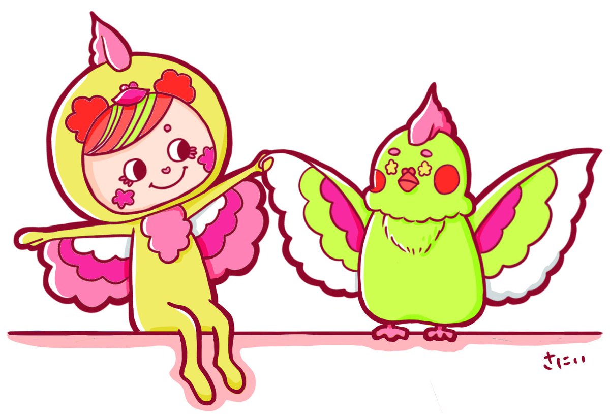 インコの女の子とともだち🦜 #イラスト #イラスト好きな人と繋がりたい #イラスト好きさんと繋がりたい #絵描きさんと繋がりたい #女の子イラスト #illustration #カラフル #インコ #ことり