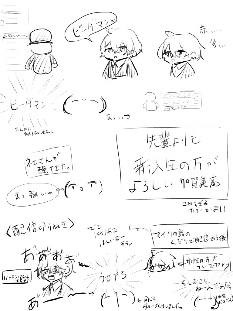 #加画美 最近見た配信などの感想。 バトエンのやつ、ワイもダメージ喰らいましたわ…いやだって、ワイが小学生の時に流行ったやつ…… バトエン………:(;゙゚'ω゚'):