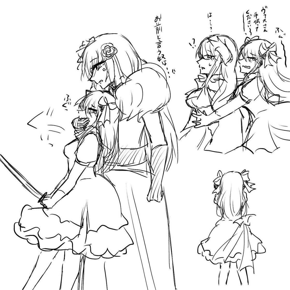 #いらすこや まだ下描きというかラフ?なんだけど、衣装可愛いからさ、めっちゃ描くの楽しいのよね…… 右下は乙女解剖モチーフ!骨描けねぇ…(絶望)