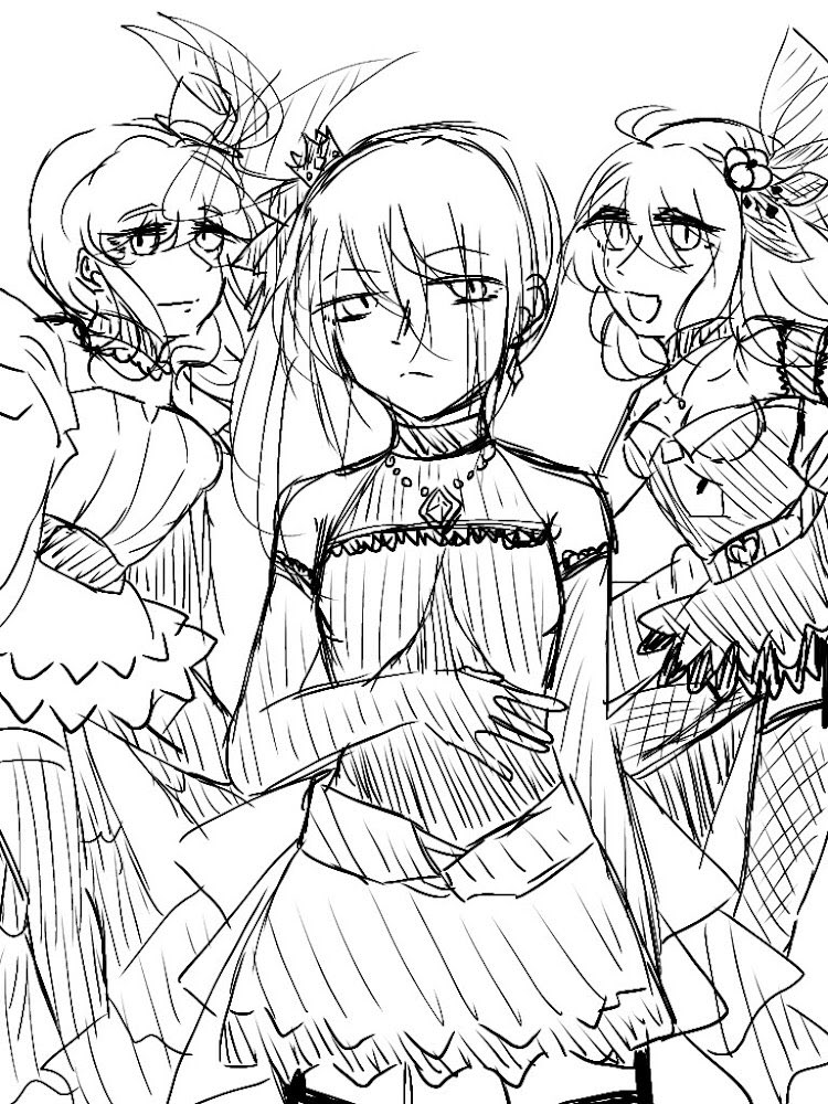 0 9 #いらすこや まだ下描きというかラフ?なんだけど、衣装可愛いからさ、めっちゃ描くの楽しいのよね…… 右下は乙女解剖モチーフ!骨描けねぇ…(絶望) 21/07/09 00:14