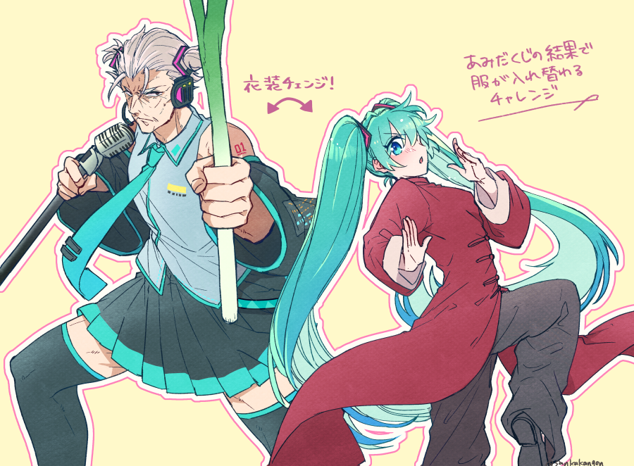 ふぁぼの数だけあみだくじ企画のやつ。 李書文(殺)とミクちゃんの服が入れ替わりました。 ありがとうございました〜!🙏