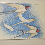 #紙飛行機 紙飛行機を飛ばすと2羽のツバメが格闘戦を挑んできました。 動画を撮れなかったので描いてみました。