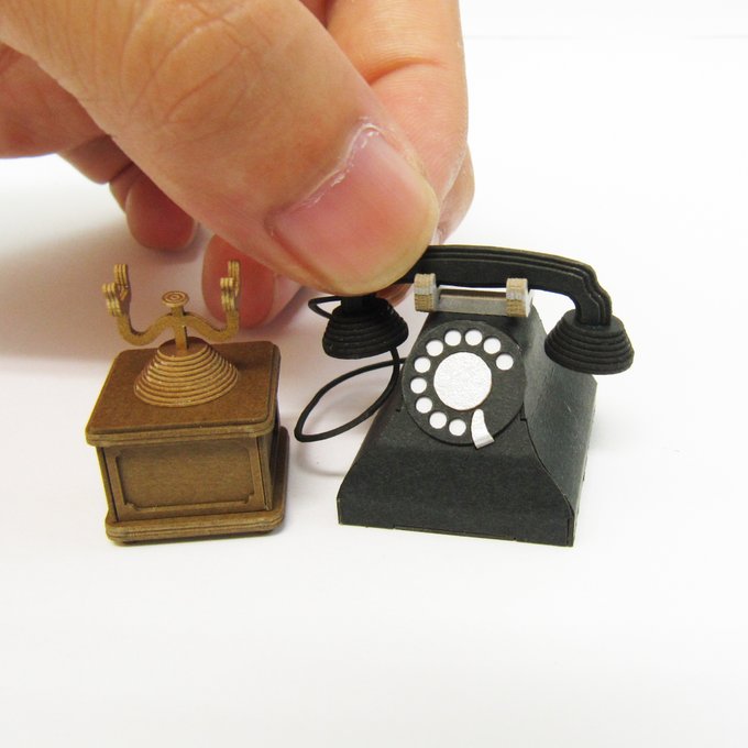 2 25 #みにちゅあーとキット 1/8 みにちゅあーとプチ【黒電話】黒電話と保留の時に受話器を乗せるオルゴールのセットです😍ジーコ、ジーーコってダイヤル回すときの音が聞こえてきそうです😆 #ペーパークラフト #ミニチュア #レトロ 22/09/16 18:19