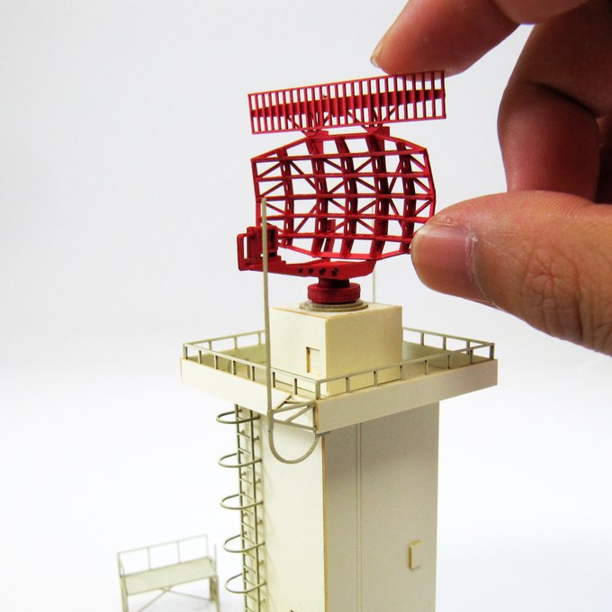 #みにちゅあーとキット 1/144 航空情景シリーズ【航空管制レーダー塔】基地情景を編成する際に欠かせないタワー型レーダー塔。安全且つ最短距離を通って空港に誘導😊二段になった赤いアンテナ部分はリアルに再現しました😆 #航空管制 #ペーパークラフト #ジオラマ