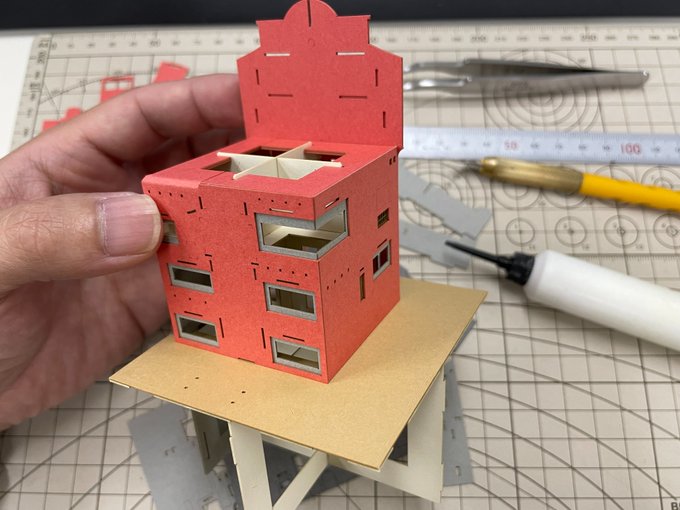 3 42 #みにちゅあーとキット スタジオジブリ作品シリーズ【#千と千尋の神隠し ジオラマ】手のひらサイズの油屋😊あともう少しで出来上がります💪 #ジオラマ #ペーパークラフト #スタジオジブリ 22/10/31 17:29
