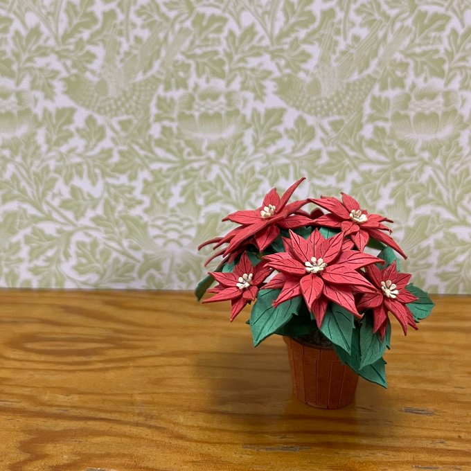 3 30 #みにちゅあーとキット みにちゅあーとプチ【ポインセチア】この間のポインセチアが完成しました。3セット使って賑やかに😊細かい白砂があったので鉢の中にパラパラ~と。こんな感じにアレンジしても楽しいですよ~😆 #ミニチュア #ペーパークラフト #クリスマス 22/12/14 17:47