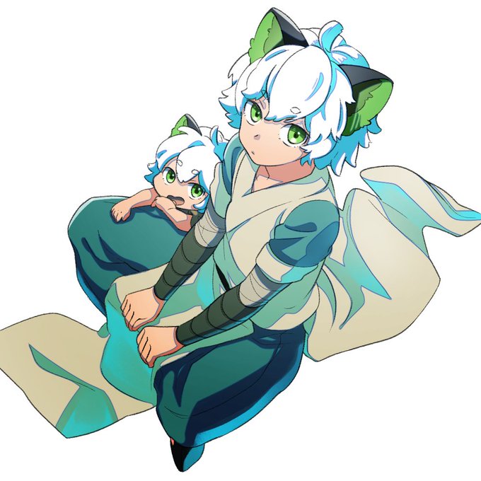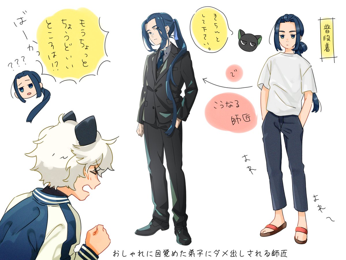 ニンゲンの服を着せるやつの師弟。 背伸びする弟子。 #羅小黒戦記