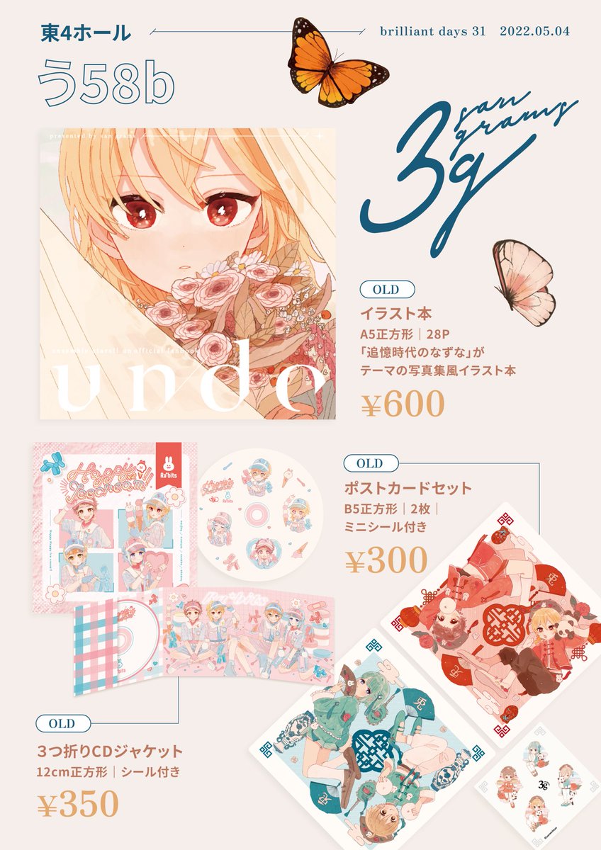 31 115 10/16🌼brilliant days34 西3ホール C16ab スペース頂いています🙇♀️ 今回は合同スペースです! まりなさん、さなぎさんと私の3人で 「Ra*bitsとクリスマス」をテーマに、オリジナル衣装を描きあいっこしました🎄 他にも個人の既刊を持っていく予定です。是非遊びにいらしてください🥳 22/09/22 21:58