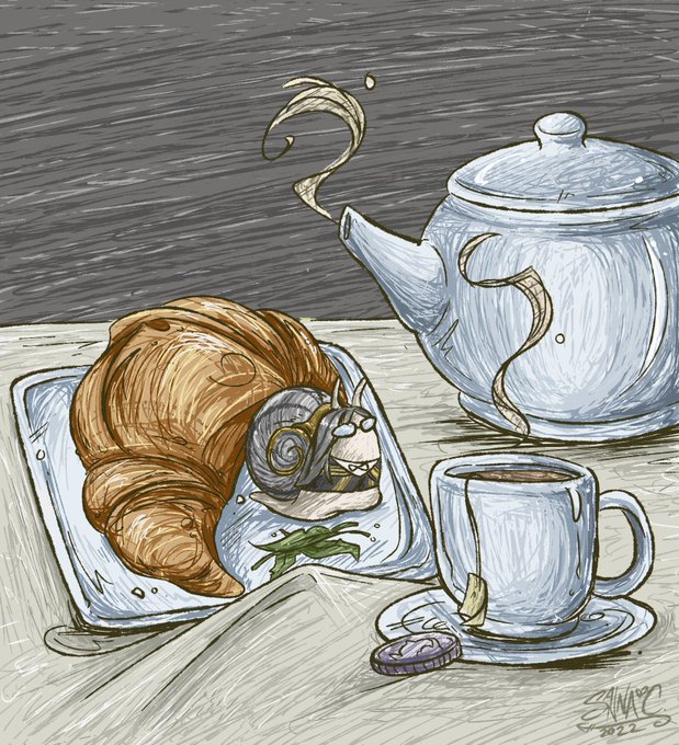 "Good morning everyone, it's me, Vesper Noir. Resident scholar snail of the Adventure's Guild, Tempus. How about you join me for some tea with quarters?" 📗🐌 #VespArt #VesFriends #Noirgrounds 📗🍵🪙