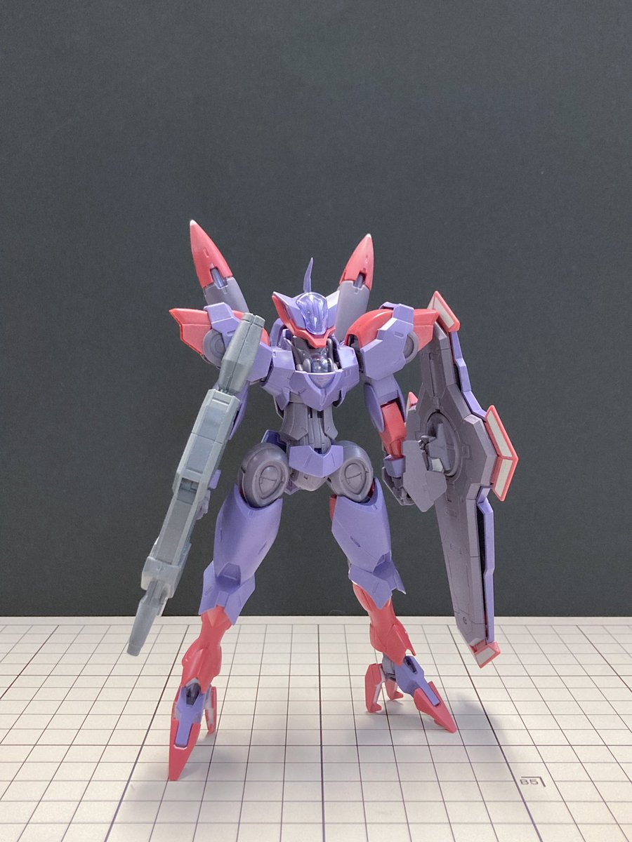 無印1/100のアストレア。腕、腰、脚の各付け根を詰めてバランスを調整。ハンドパーツはジャンクからの流用。白とグレーは成形色のままで部分塗装。GNケーブルはクリアファイルを切り出して着色したもの。お手軽カンタン時短仕上げで製作期間はちょうど1週間。 #ガンダムアストレア #ガンプラ