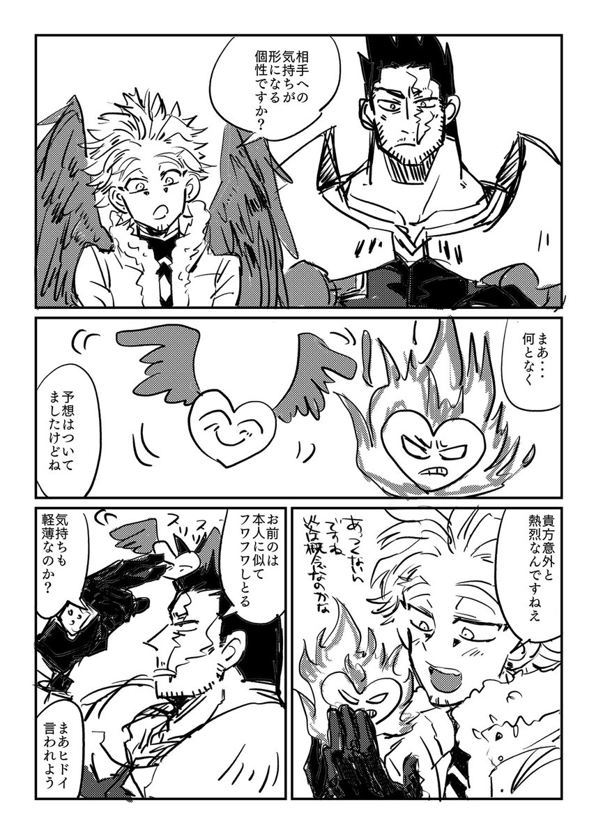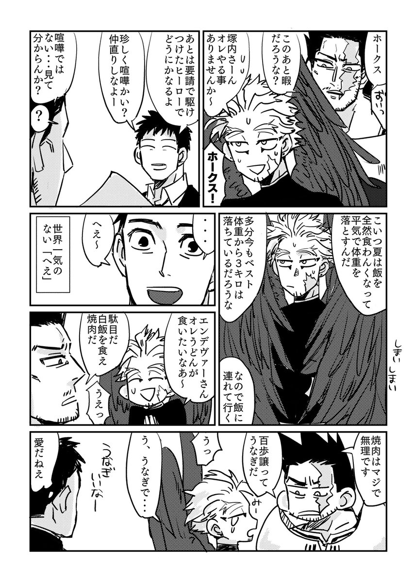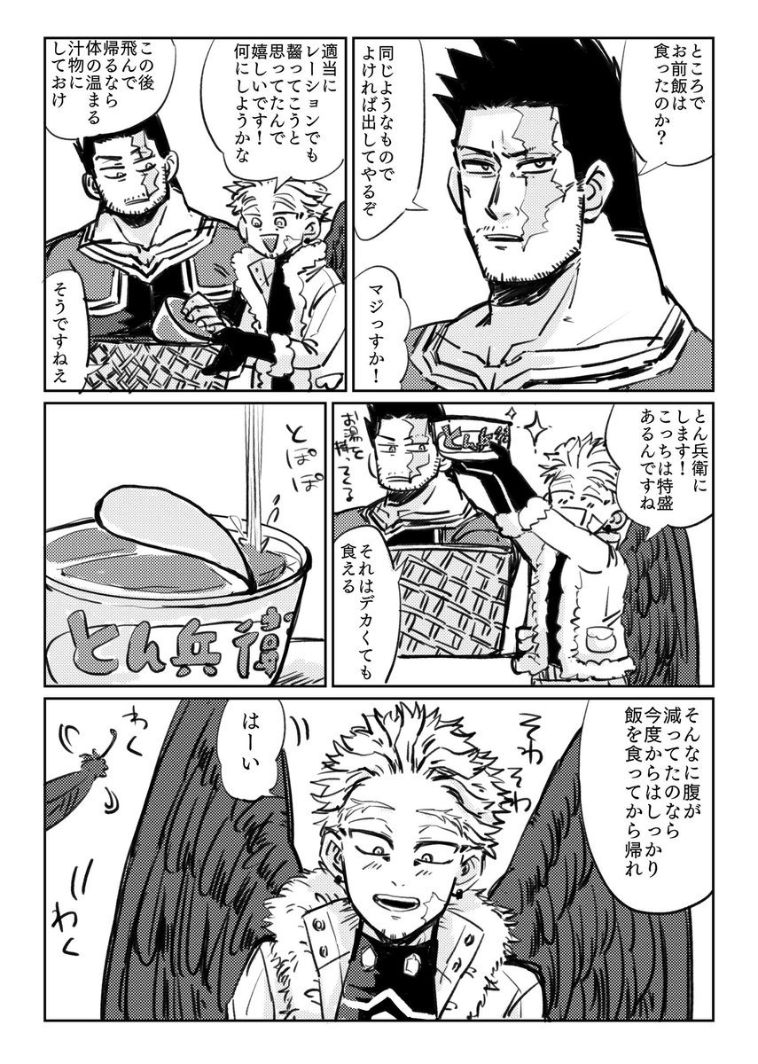 炎ホ風味のスリートップ漫画です🔥🦅いつか炎デバさんにも昔の話とかする時来るのかなあ・・・男の子だから好きな人の前ではカッコつけたいからしないかなどうなのかな🥺