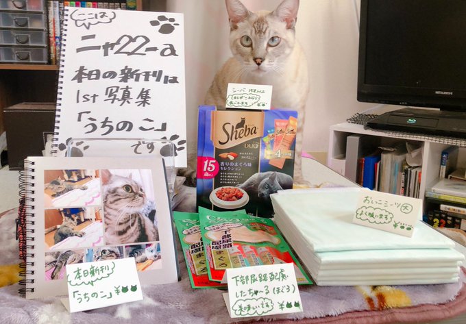 私も設営完了ツイートしちゃうかな…売り子さんは白いしましまの子が来てくれます😊