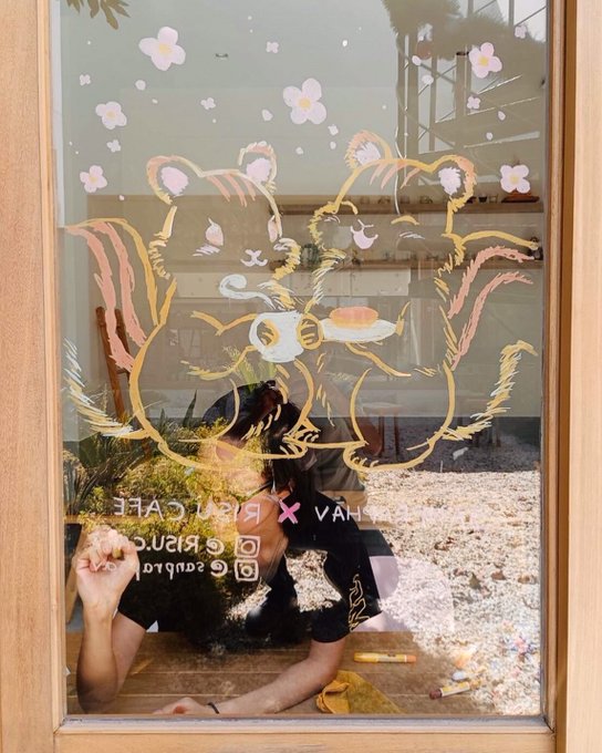 [SANPRAPHAV X RISU CAFE] ☕️🐿✨ ที่ผ่านมาได้มีโอกาสไปวาดกระจกร้าน Risu Cafe มาค่ะ อยากวาดกระจกร้านมานานมากกก ในที่สุดก็เป็นจริง เย้~! ขอบคุณทางร้านด้วยค่ะ >< ร้านน่ารักน่านั่งมาก ขนมก็อร่อยนะ! #sanpraphav EN in next tweet (1/3)