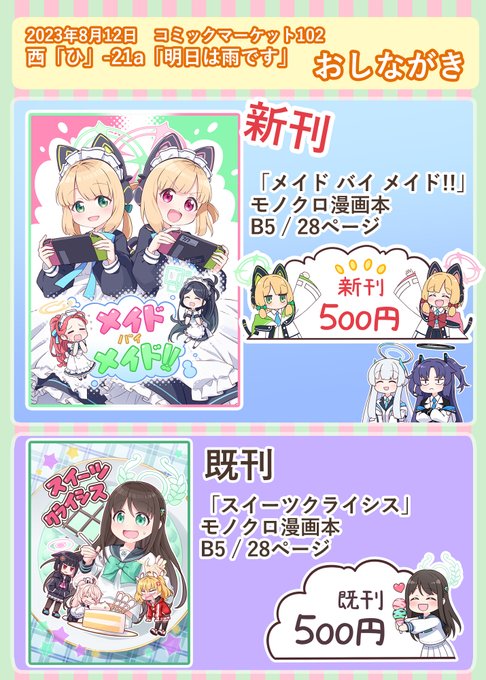 夏コミのおしながきです。よろしくお願いします! 新刊(ツリーにサンプルあります):twitter.com/sansei_rain/st… 新刊委託(メロンさん):melonbooks.co.jp/detail/detail.… 既刊委託(メロンさん):melonbooks.co.jp/detail/detail.…