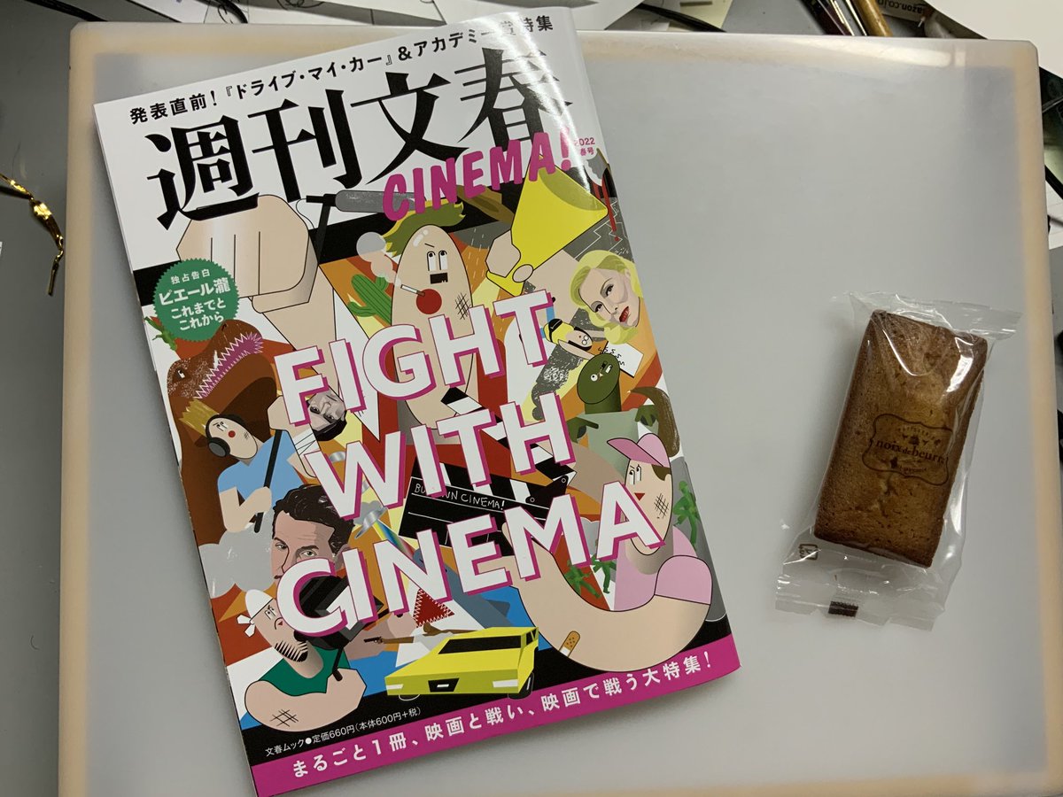 🌸🌸現在発売中の「週刊文春CINEMA!2022春号」に「私の映画履歴書」という漫画が載っております。 となりは深夜のフィナンシェです。今から食う。