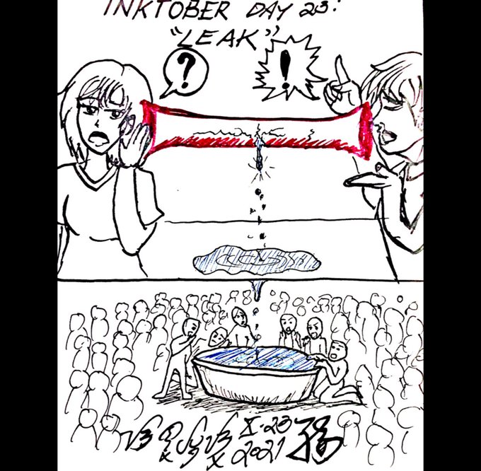 “Leak” Day 23/31 #Inktober2021 (Sometimes, things escape a private word with someone. Word does get around fast.) #inktober #inktoberph #ink #sketch #drawing #leak #tsismis #chismes #gossip #dataleak #secret #traditionalart #artprompt #artph