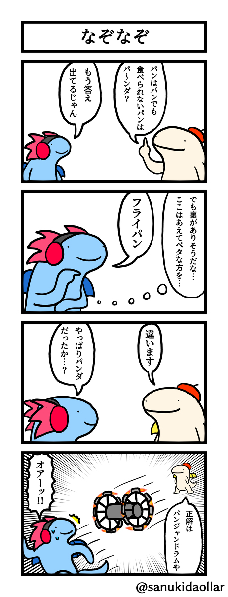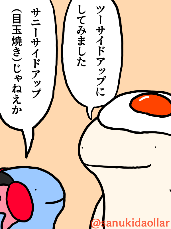 pixiv今日のお題「ツーサイドアップ」 #pixiv今日のお題 #ツーサイドアップ #サニーサイドアップ #オリジナル #オリキャラ #オオサンショウウオ #ウーパールーパー #目玉焼き #1コマ漫画 pixiv.net/artworks/10097…