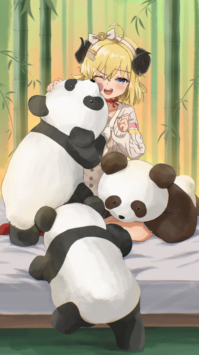 あ、乗らない乗らない!重たいよ〜🐼🐼🐏🛏🐼 #つのまきあーと