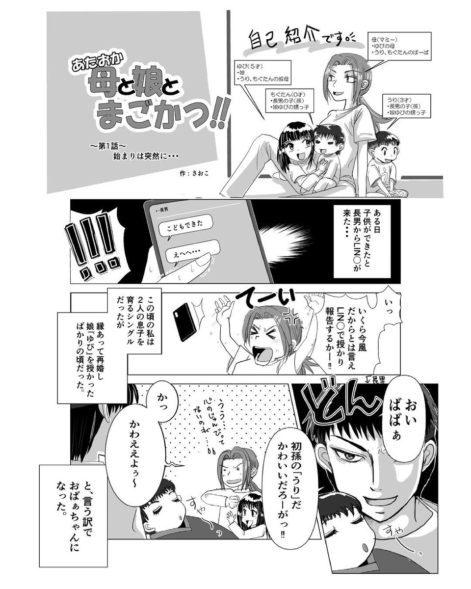 過去作です〜 ちょっと真面目な感じです。 あたおか母と娘とまごかつ‼︎ 第5話 守りたいもの #漫画が読めるハッシュタグ #みんなで楽しむTwitter展覧会 #アトリエの系譜 #漫画描きさんと繋がりたい #いろんな絵描きさんと繋がりたい