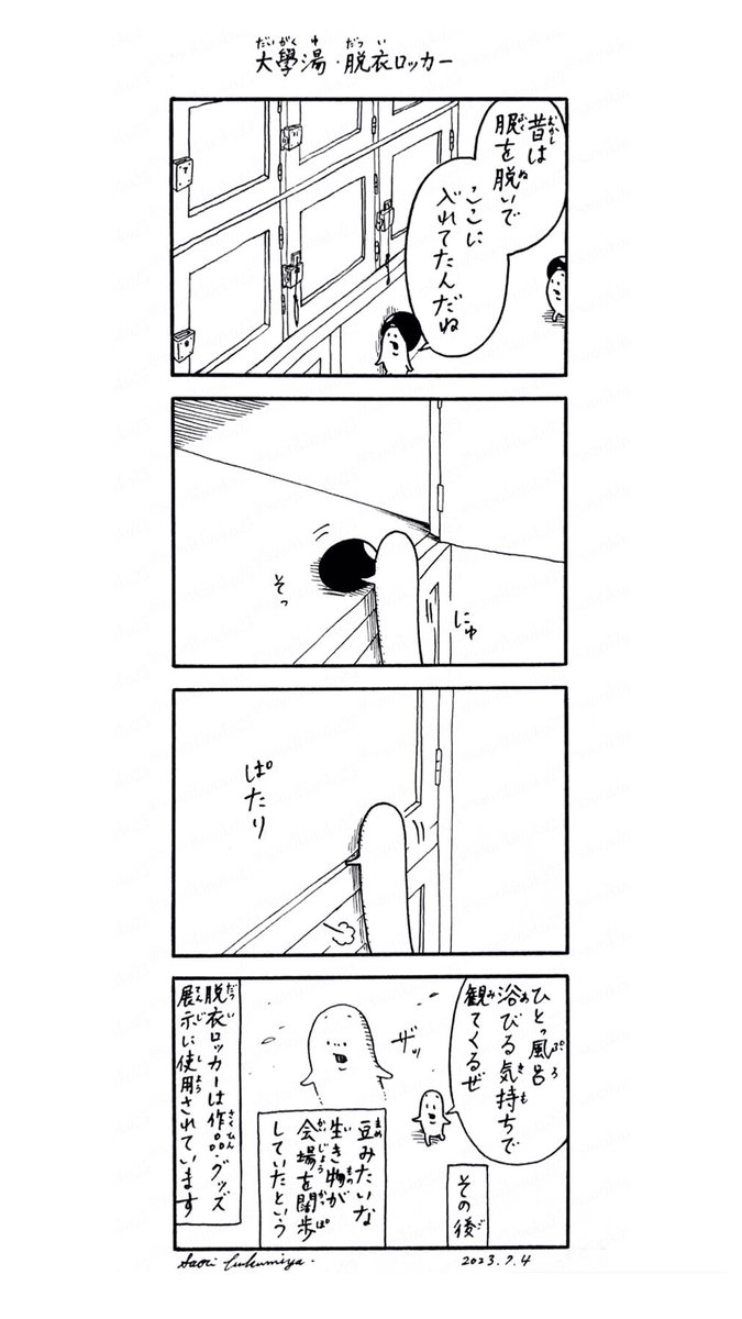 大學湯・脱衣ロッカー ただいま参加中『Blue.展』 きのこは開催場所 大學湯の脱衣ロッカーを使ってみたいようです @daigakuyu07 #きのこ #漫画が読めるハッシュタグ twitter.com/saorikinoko25/…