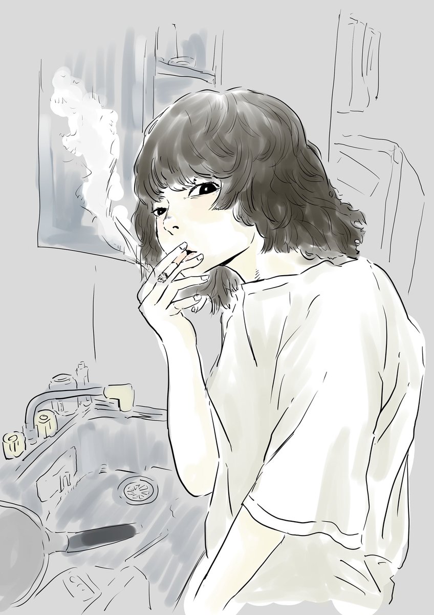 もっさりヘアーにオーバーサイズの白シャツ、そしてタバコ #イラスト #デザイン #デジタルイラスト #マンガ #illustration #manga #いつか超つよつよ絵師になるので今のうちに推しませんか