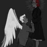 Angel begging for his demon's forgiveness inside divorce court. London, ca. 2026 (reference in thread) [ #GoodOmens2Spoilers #ineffablehusbands #GoodOmensFanArt #RenewGoodOmens ]