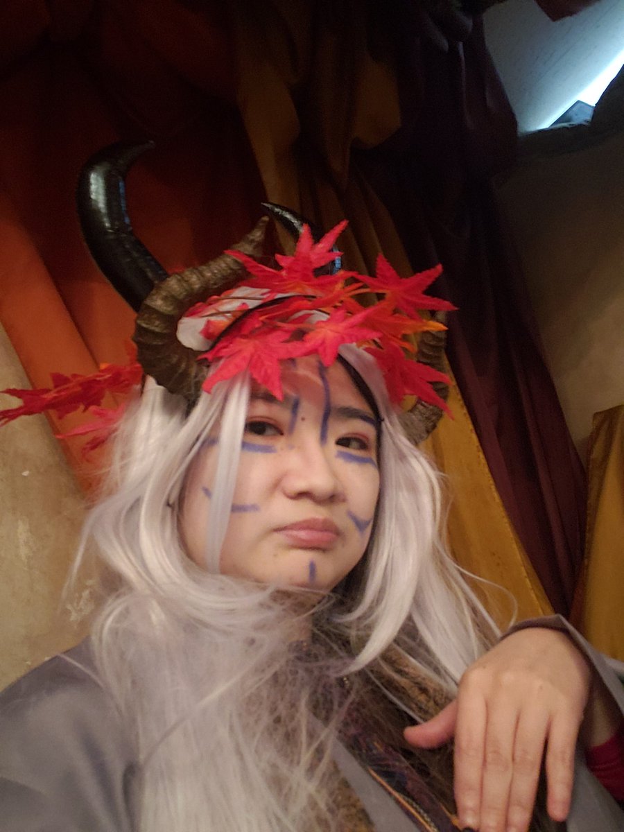 デザインフェスタで、神獣の白澤、リフルシャッフルさんの悪鬼。傀儡酒場星奏で、老いたエンシェントドラゴン、エルダードラゴンかもな方。創作コスプレのボスラッシュみたいな、コス納め、LARP納めになりました!#LARP納め #コスプレ納め #ファンタジーハンドメイド #LARP #コスプレ総決算2019