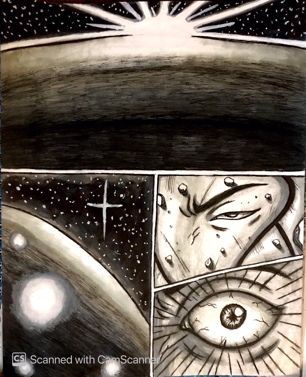 Pg 2 of my comic Beast. Michael awakens on a battle scarred planet as he reaches for his pistol. #comictober #drawing #illustration #comic #manga #ComicBooks #inktober2020 #art #artist