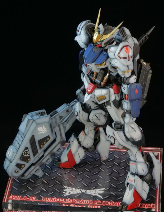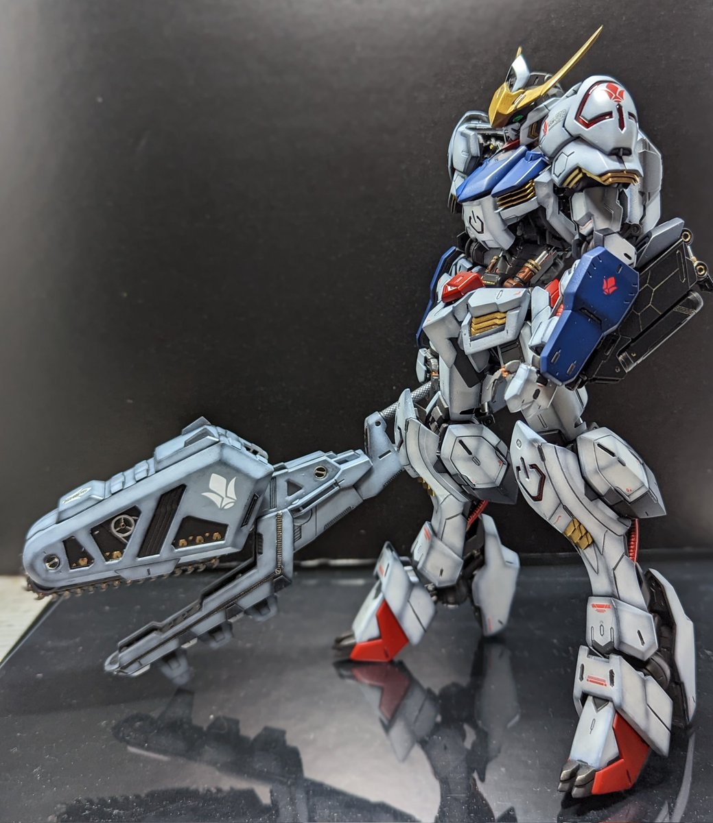 ガンダムバルバトス第5形態地上戦仕様 モデルグラフィックスの朱凰@カワグチさん(@suou_ray ) の作例に惚れ込み、リスペクトしつつ製作しました。 本体もさることながら、塗装&レンチメイスも気合いを入れて作り込みました。 #個人的に今年1番頑張ったプラモデル見せてください
