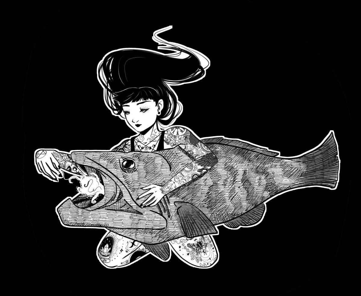 I have no idea if I'll keep up with this, but here's Day 1, "Fish". #inktober2020 #inktober #Witchtober2020 #witchtober