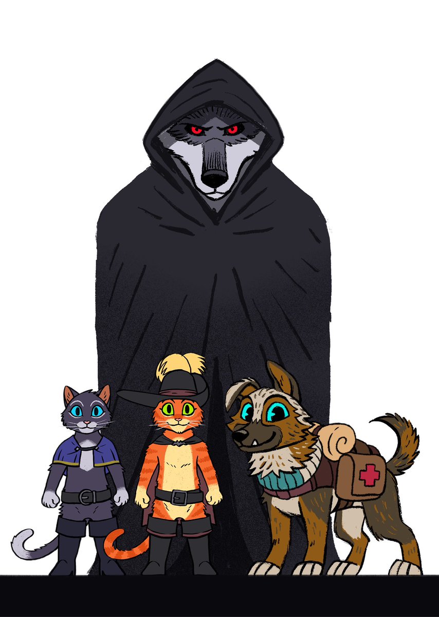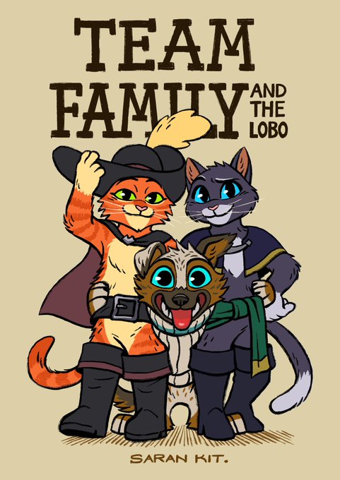 Team family and the Lobo, A short Puss in boots fan comic (about 18-20 pages). The first part starts this weekend. ; ) #PussInBoots #fanart