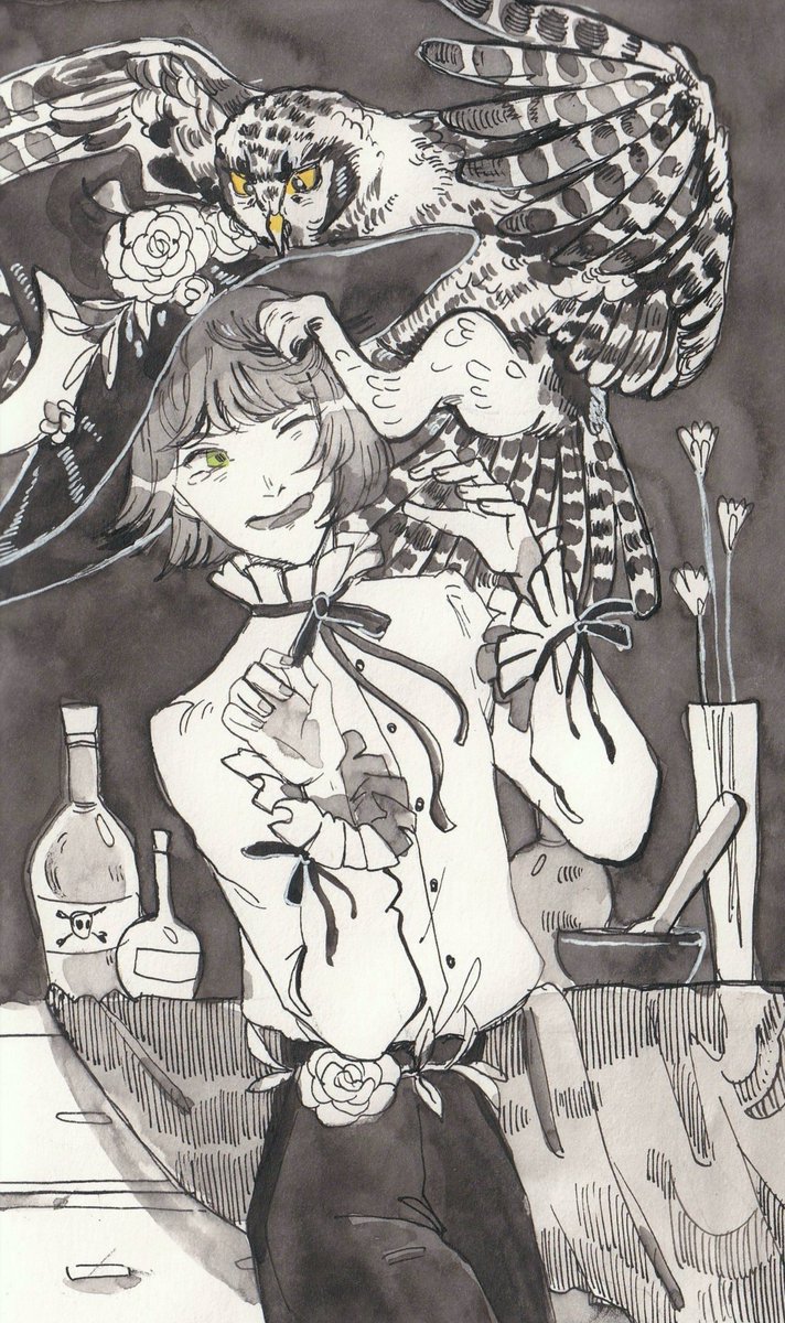 #inktober2020 #Witchtober2020 Day 4 Owl Феликс и вредная сова Мара Текст к иллюстрации в группе вк, ссылка в шапке профиля.