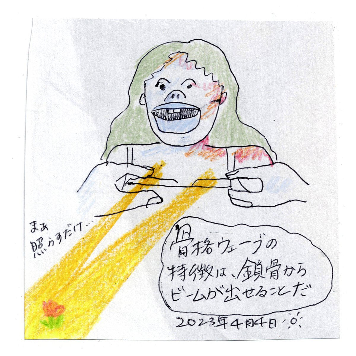 0 3 「骨格ウェーブの特徴は、鎖骨からビームが出せることだ」 #illustration #illust #draw #drawing #イラスト #絵日記 #1日1絵(#一日一絵) 23/04/04 14:26