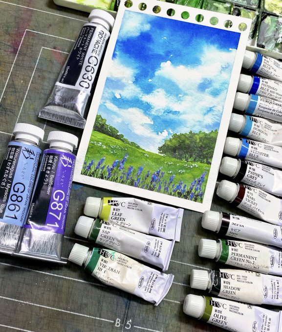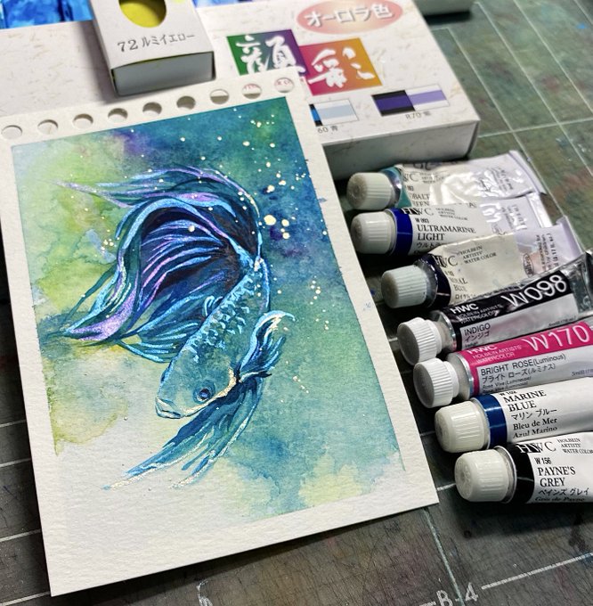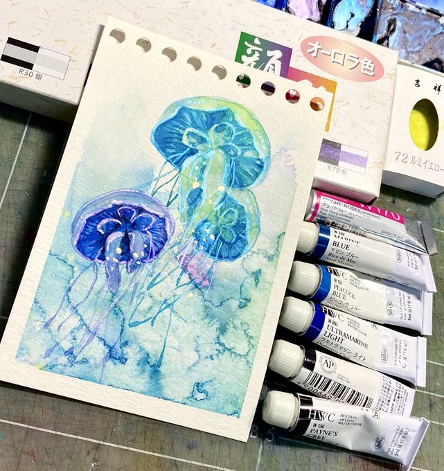 2周年おめでとうございます〜〜〜!! いつも素敵な絵具を生み出す魔術師なめこさんの絵具オンリーでベタを描いてみました! (4枚目はわかりやすく分離している描き途中ので失礼します) 使用したものは夜祭から2色、ミルキラから1色そして分離するなめイロ一色です✨ #なめキラweb展02